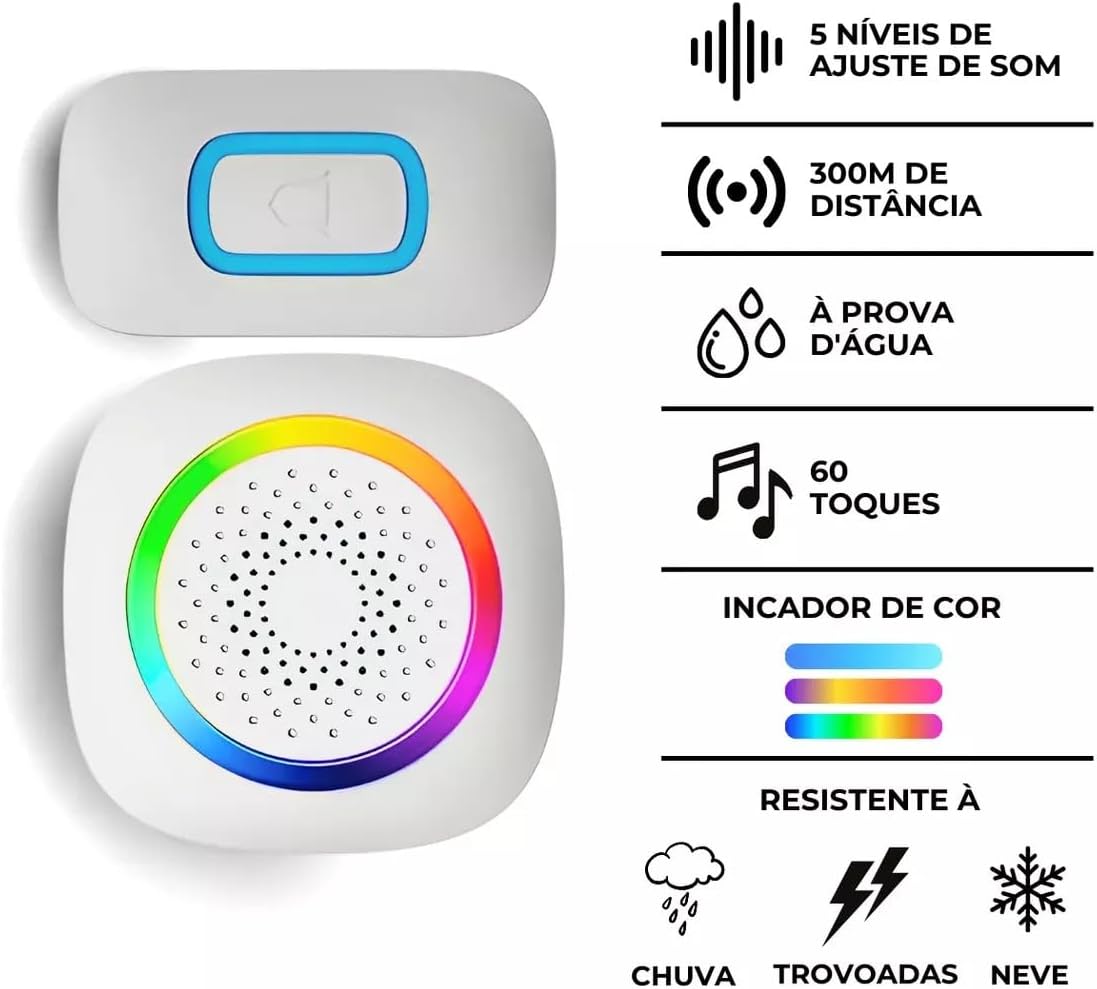 تغطية واسعة: يعمل على مسافة تصل إلى 300 متر دون وجود حواجز، مما يتيح لك سماع الجرس بوضوح من أي مكان داخل المنزل