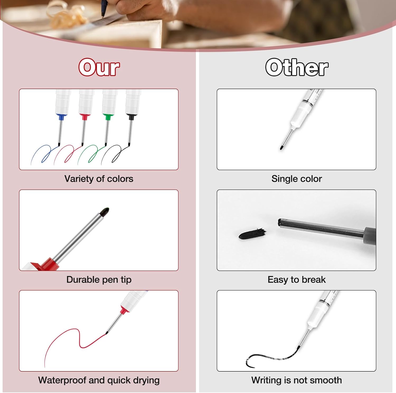تحكم أعلى في التحديد: بفضل رأسه الطويل يمكن للحرفيين الوصول إلى الزوايا والأماكن الضيقة بسهولة، مما يعزز دقة العمل